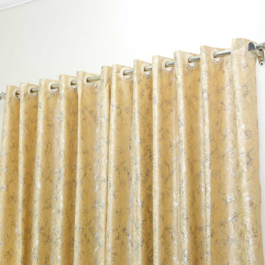 Golden texture bohat classy lagti hai. Room ka look ekdum royal ho gaya. Fabric soft aur shining finish ke sath.